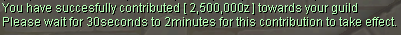 - Contribution Log is also real time on your Guild Window, as you can see, since we donated 2,500,000z, you will then see that we have a contribution listed.